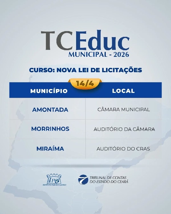 O TCEduc Municipal 2026 promove um importante curso voltado para gestores, servidores públicos e sociedade civil, com foco no fortalecimento da gestão pública e do controle social.
